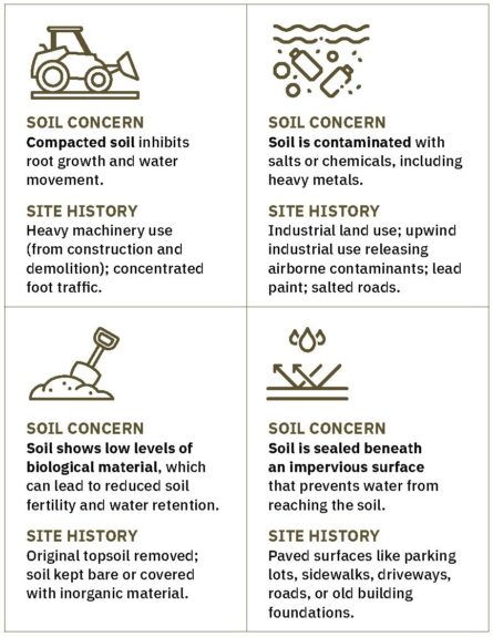 ▶ Research your site’s history. Understanding past land uses can help identify potential soil contamination risks.